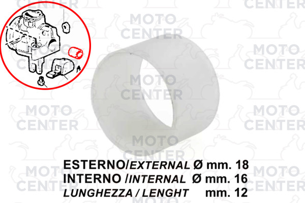 RIDUZIONE ISOLANTE ATTACCO CARBURATORE DIAM. EST.18 - DIAM. INT.16 - LUNGH. 12 PER CARBURATORE SHA 10 PIAGGIO