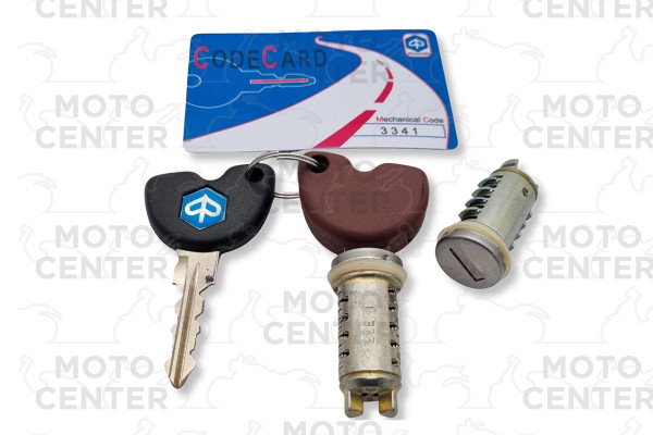KIT 2 SERRATURE E 2 CHIAVI PIAGGIO LIBERTY 125 150 200 4T ('01-'12) - BEVERLY ('05-'11) CON CODICE