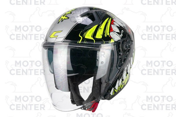 CASCO DEMI JET CGM 127X DEEP FREAKER NERO GIALLO FLUO