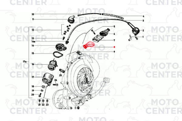 Il cappuccio in gomma per bobina di accensione è un elemento protettivo cruciale per il sistema elettrico delle Vespa sportive anni '60.