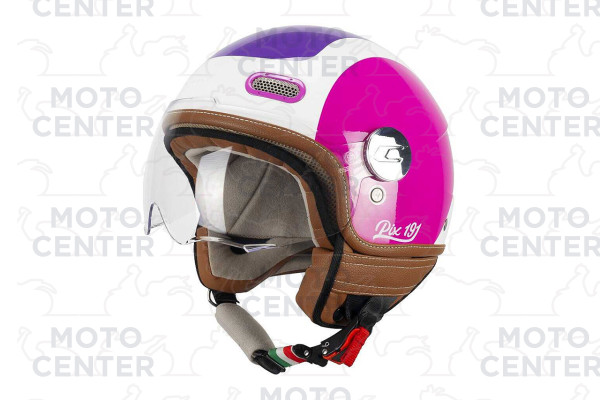 Ispirato allo stile classico italiano che ci contraddistingue da sempre il 191 PIX è un demi-jet estremamente compatto e leggero. Si differenzia dal tradizionale casco sferico grazie alle prese d'aria anteriori in metallo e ai tagli posteriori della calotta che alloggiano anche gli estrattori d'aria. Gli interni termoformati, completamente estraibili e lavabili sono provvisti di sottomento e collarino paranuca removibile con zip e, in tutte le varianti grafiche, impreziositi da dettagli in ecopelle marrone dallo stile vintage. Il PIX può essere equipaggiato con visiera lunga per una maggiore protezione dal vento o con visiera sagomata dalle linee moderne, le visiere intercambiabili tra loro condividono il sistema di fissaggio. Completano le dotazioni del casco la fibbia micrometrica, l'anello antifurto, l'elastico fermacinturino e nelle varianti con grafica il passaocchiali posteriore.