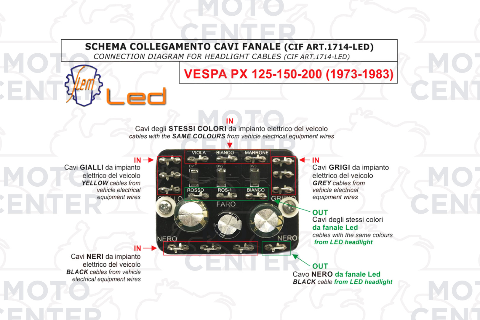 (SCHEMA COLLEGAMENTO CAVI AL CONVERTITORE INCLUSO NELLA CONFEZIONE)