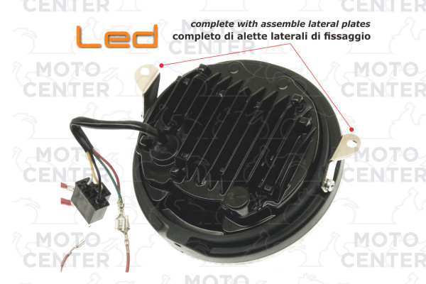 GRUPPO OTTICO A LED "SIEM" COMPLETO DI ALETTE LATERALI DI FISSAGGIO + CONVERTITORE VESPA PX 125 150 200