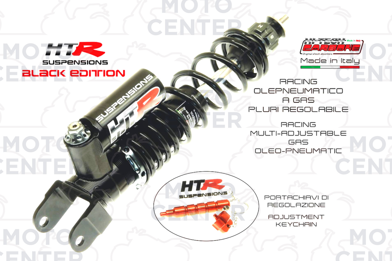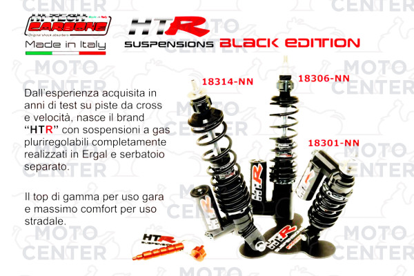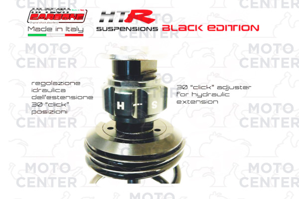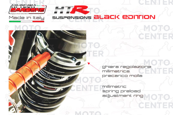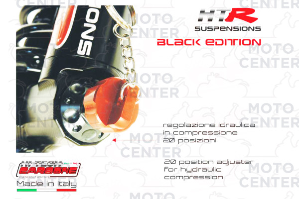 REAR SHOCK ABSORBER - HITECH CARBONE “HTR” GAS-OIL PNEUMATIC – MULTI ADJUSTABLE - BLACK EDITION - WITH ADJUSTMENT KEYCHAIN (CARBONE COD.6033.HTR/5N) - boxed served product (see photo) + service booklet