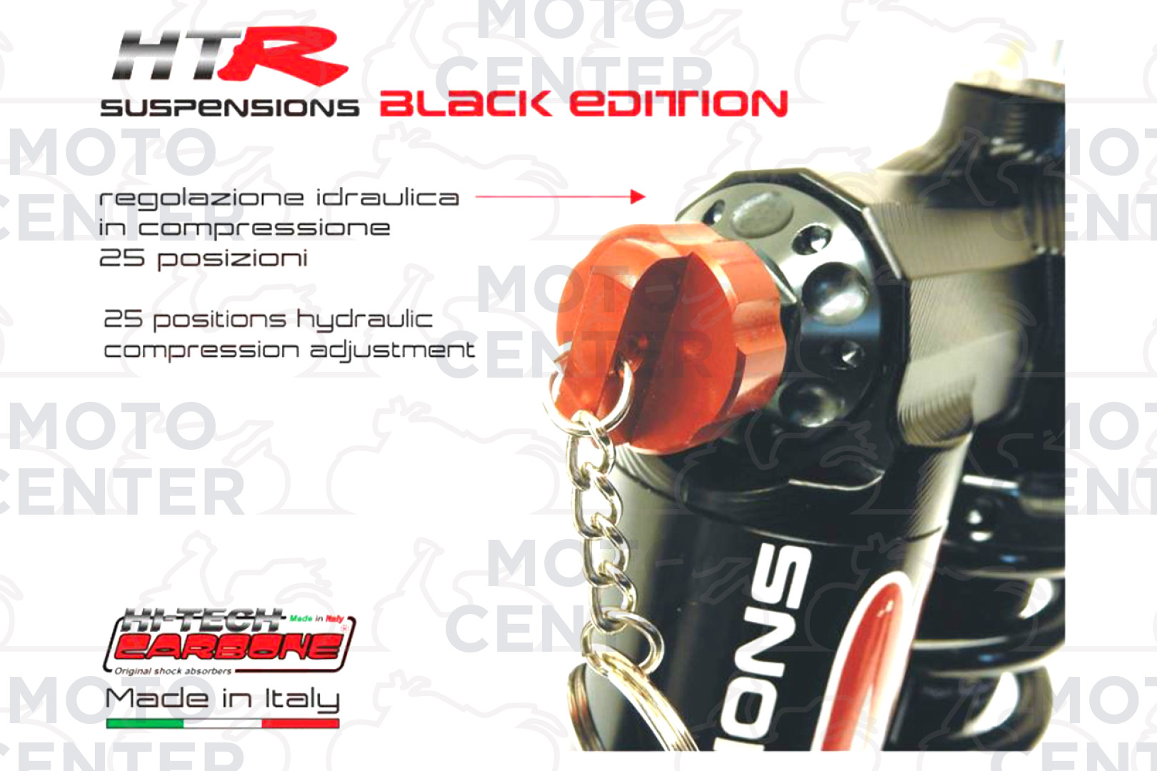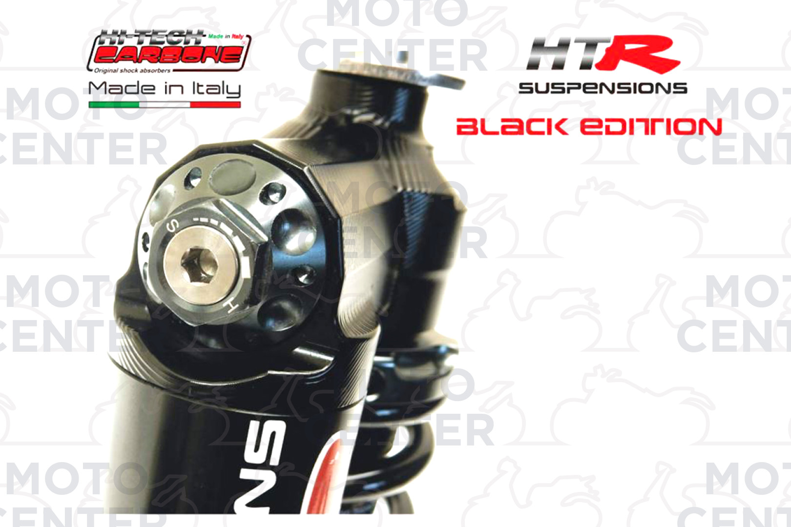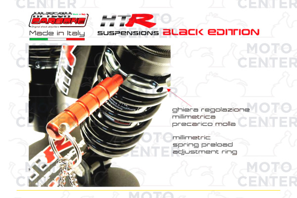 FRONT HITECH CARBONE “HTR” GAS-OIL PNEUMATIC SHOCK ABSORBER – MULTI ADJUSTABLE - BLACK EDITION - WITH ADJUSTMENT KEYCHAIN (CARBONE COD.6030.HTR/5N) - boxed served product (see photo) + service booklet