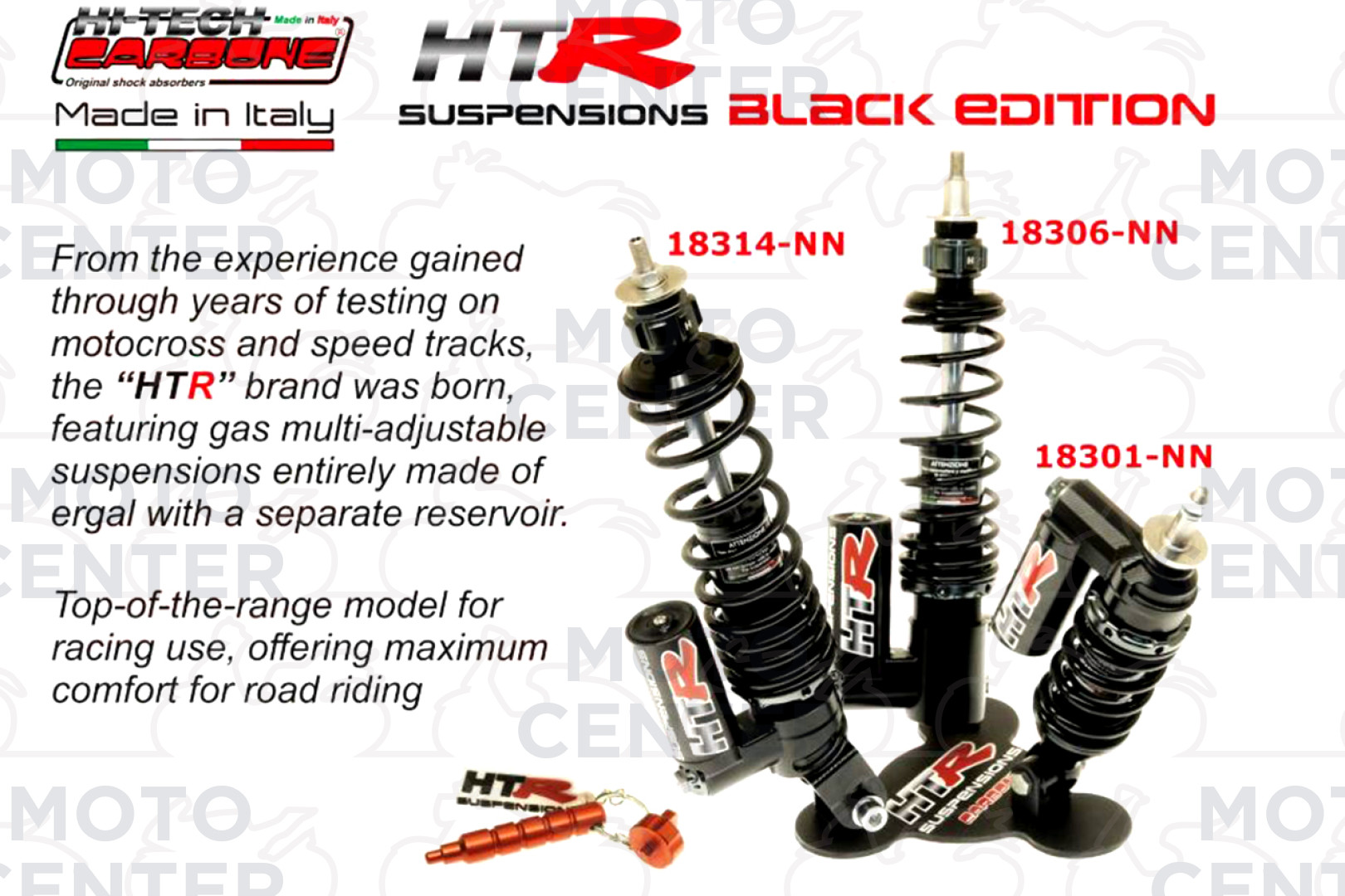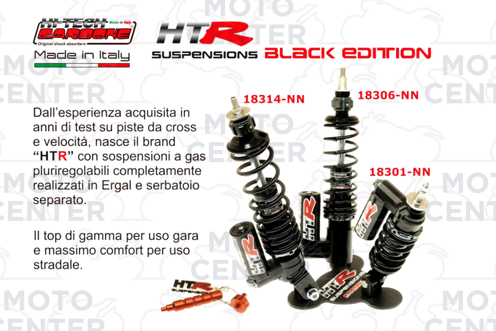 - LA SOSPENSIONE HTR E' COMPLETAMENTE RIGENERABILE SOLO CON COMPONENTI ORIGINALI HITECH CARBONE