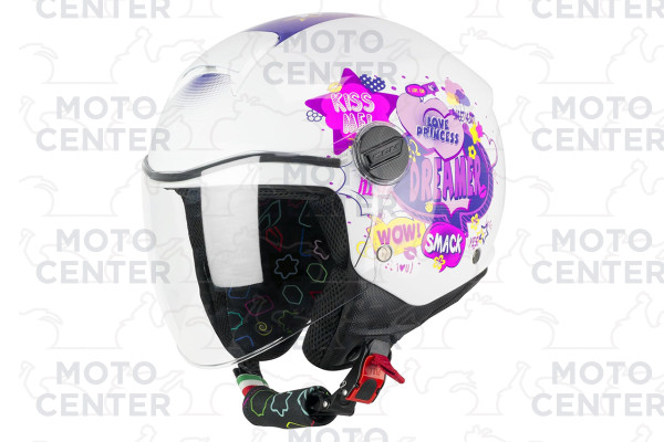 Chi ha detto che un casco YOUNG non può essere divertente oltre che sicuro? Realizzato con una calotta appositamente creata che dispone di 5 taglie a copertura delle differenti fasce di età dai bambini ai ragazzi, il 261 è un demijet leggero dalla calzata avvolgente. Caratterizzato da interni colorati estraibili e lavabili abbinanti al collarino paranuca con guanciali removibile con zip. Il casco è dotato di sistema di aerazione AIR STREAM SYSTEM completo e di una visiera lunga che offre una maggiore protezione dal vento. Completano le dotazioni la fibbia micrometrica, l'anello antifurto e l'elastico fermacinturino. Incluso nella confezione un foglio di adesivi, realizzato con una colla specifica adatta ad essere applicata sulla calotta del casco, che permette la personalizzazione del casco con emoticon e lettere dell'alfabeto.