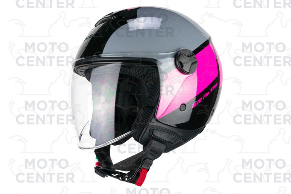 CASCO DEMI JET CGM 167R FLO STEP GRIGIO FUCSIA VERSIONE VISIERA LUNGA