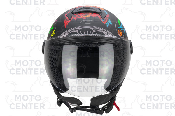 CASCO DEMI JET CGM 167S FLO JOY NERO AZZURRO VERDE OPACO VISIERA LUNGA