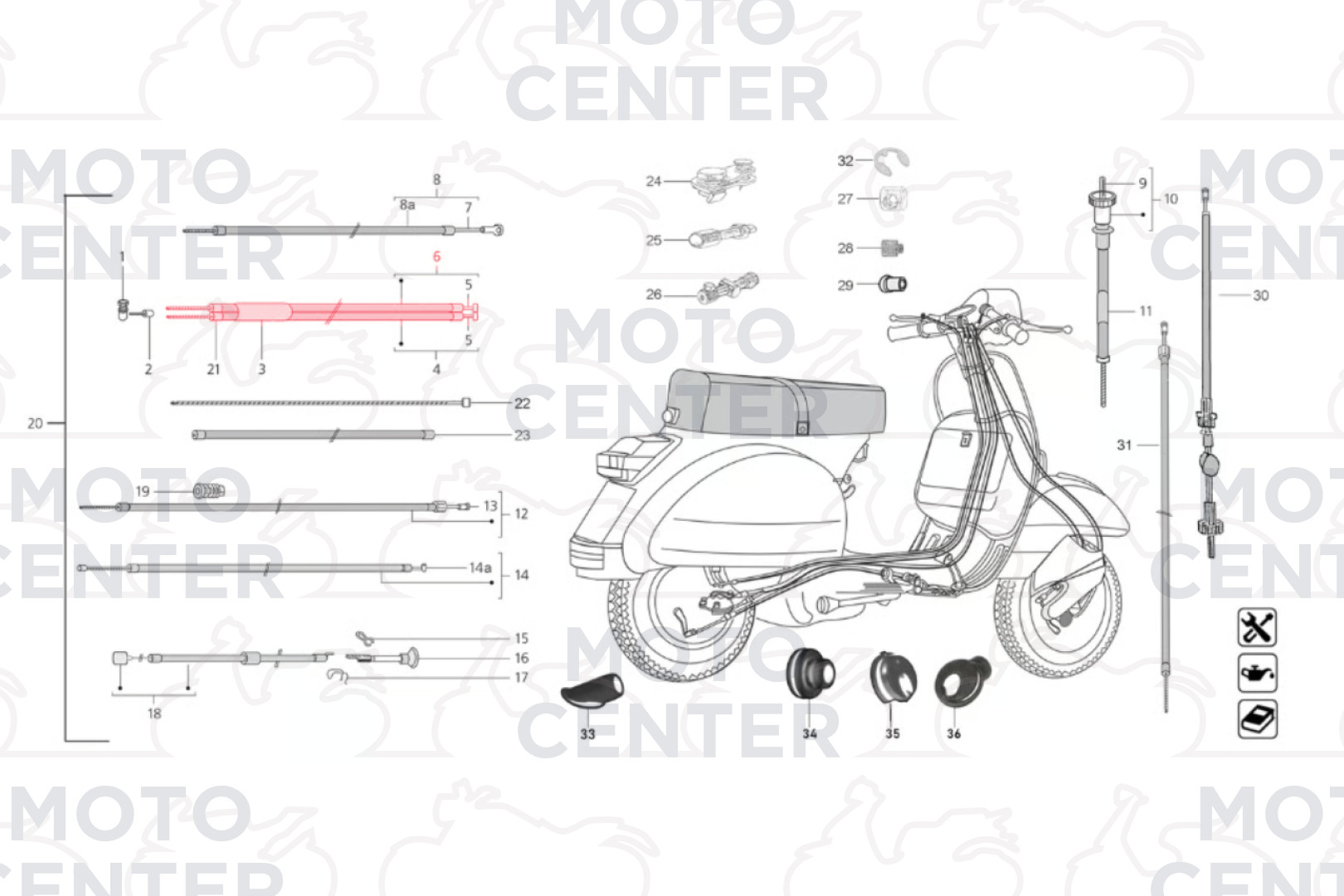 Il kit cavo cambio completo per Piaggio Cosa prima serie.