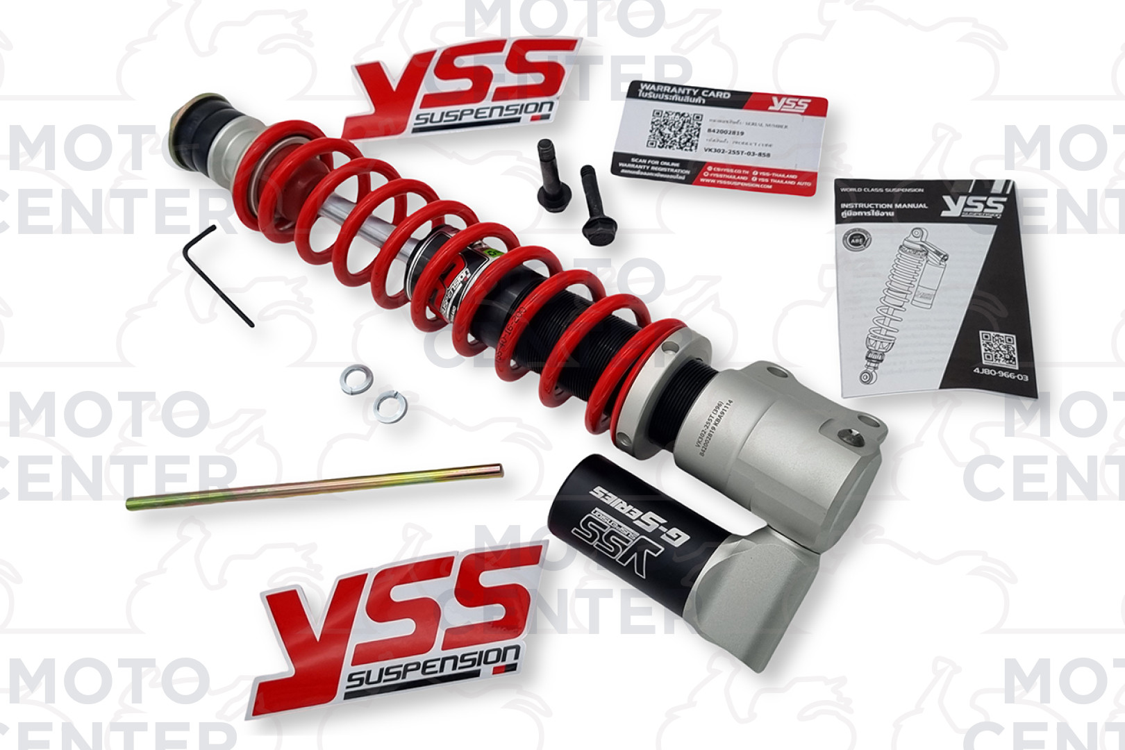 ECO Line - Mono ammortizzatore anteriorea gas con serbatoio separato, ghiera di precarico molla. Diametro Pistone 30 mm.,Diametro Stelo 12 mm., Lunghezza Amm. 255 mm.