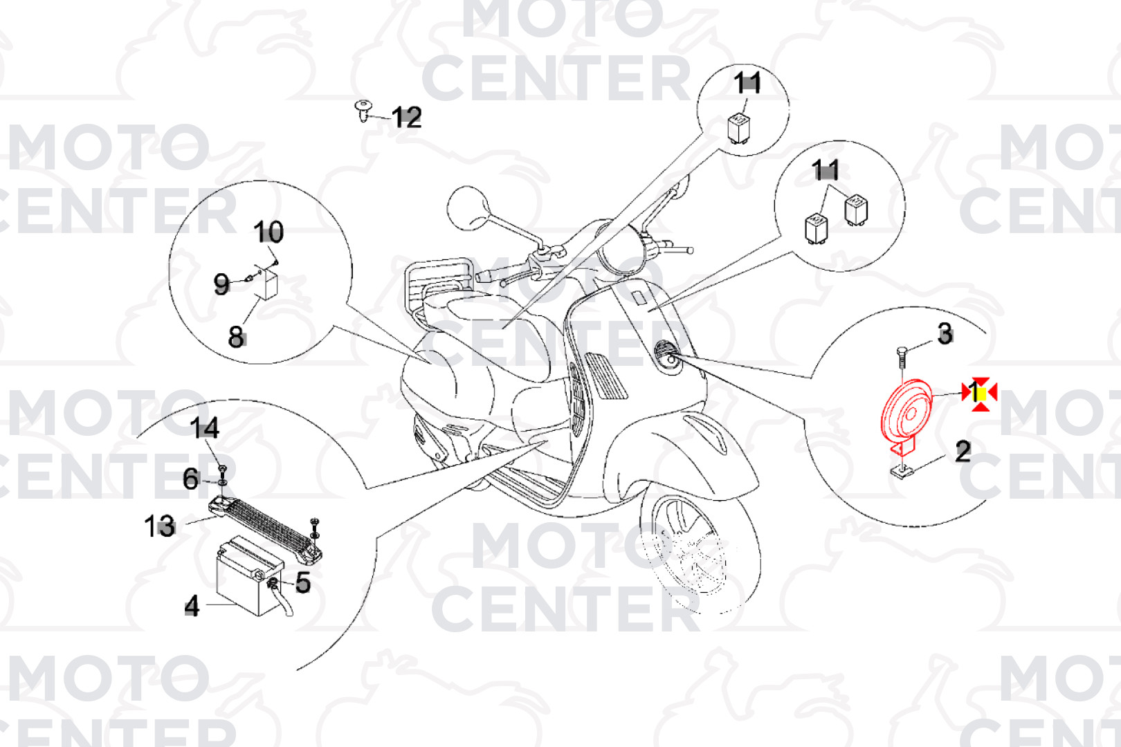 CLACSON PIAGGIO VESPA GRANTURISMO 125 200 ('03-'07) - VESPA GTS 125 250 ('05-'12) - LIBERTY 125 ('98-'00) - MYMOOVER DELIVERY 4T 4V E5 125 ('21) - MYMOOVER POSTE ITALIANE 125 ('21)