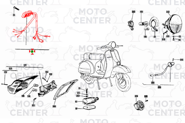 - COMMUTATORE LUCI PIAGGIO VESPA PX 125 150 200 ARCOBALENO DAL 1983 CON SPINOTTIERA