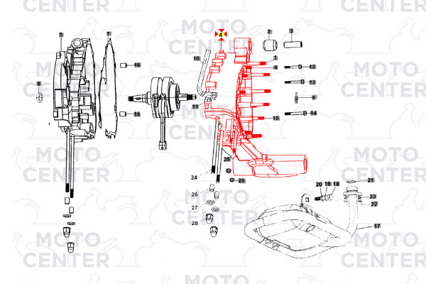 Il carter lato frizione ospita e protegge la frizione, gli ingranaggi di trasmissione e parte del gruppo cambio, garantendo una lubrificazione costante e un funzionamento regolare del motore.
