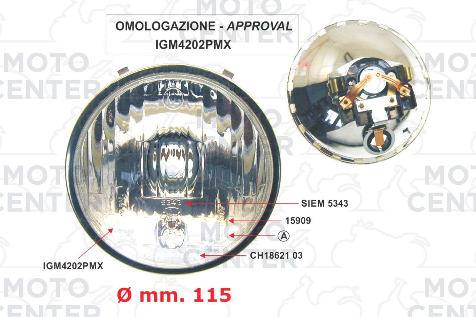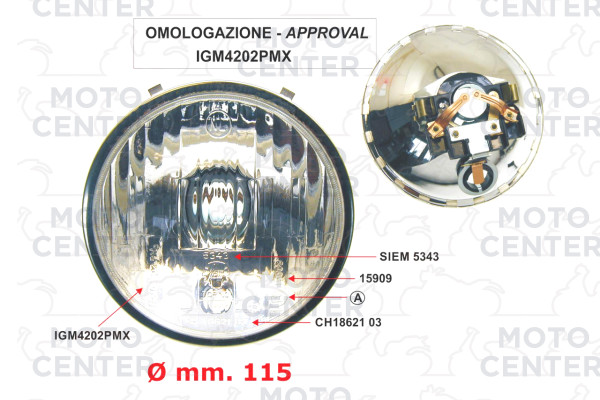 GRUPPO OTTICO SIEM Ø 115 mm. PIAGGIO VESPA PRIMAVERA 125 VMA1>2T - VESPA PRIMAVERA ET3 VMB1T - VESPA 125 150 SUPER VNC1T VBC1T
