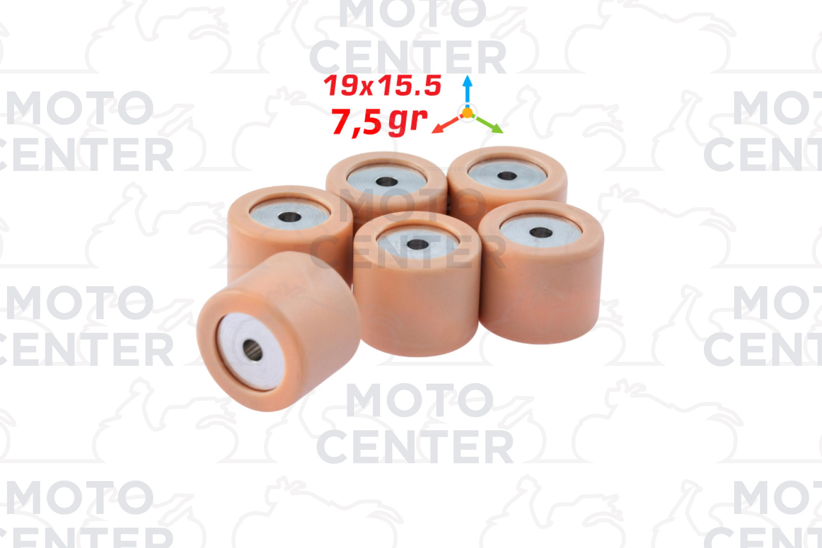 KIT 6 RULLI ROSA 19x15,5 Gr.7,5 PIAGGIO VESPA ET2 50 ('97-'00) - LIBERTY 50 2T ('06-'08) - LIBERTY 50 4T ('05-'08) - LIBERTY 50 4T DELIVERY ('09-'14) - VESPA LX LXV 50 2T ('05-'13) - VESPA S 50 ('07-'12) - FLY 50 2T ('05-'11) - ZIP 50 2T ('