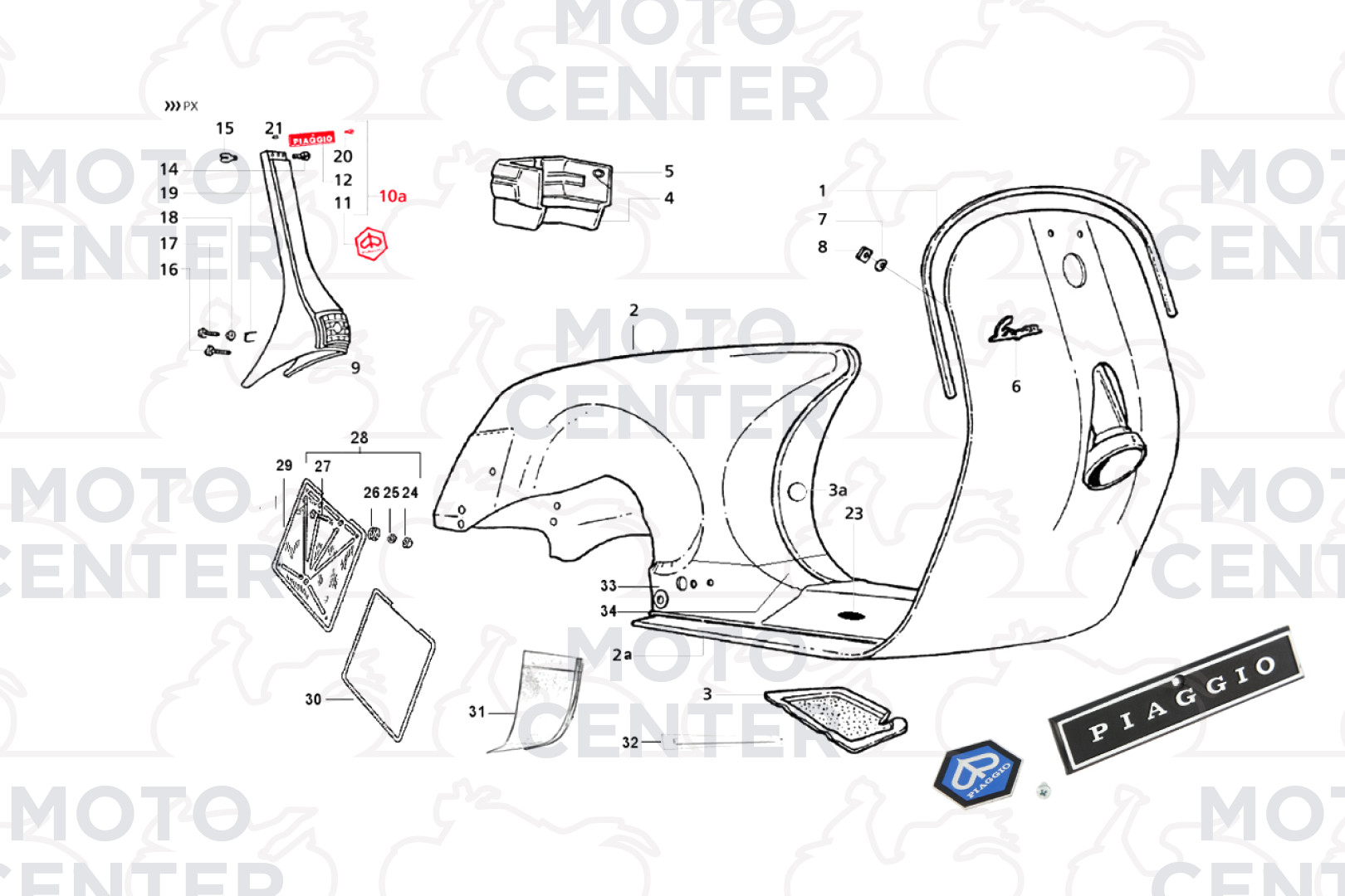 - KIT TARGHETTA CRAVATTA PIAGGIO VESPA PX 125 150 200 - 1a SERIE ('77-'83)