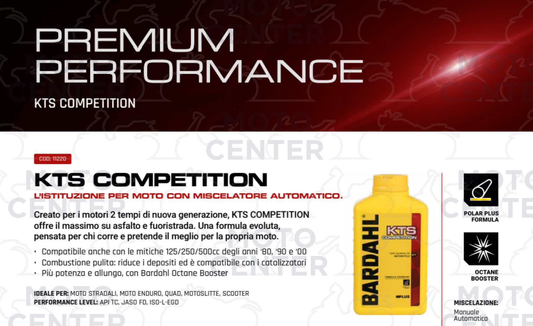 La formula BARDAHL POLAR PLUS garantisce una maggiore potenza con la massima sicurezza anti-grippaggio anche nelle più difficili condizioni d'impiego del motore.