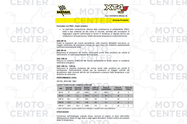 🏍️💨 Bardahl XT4-S C60 10W-50 – Informazioni Ufficiali 🔥