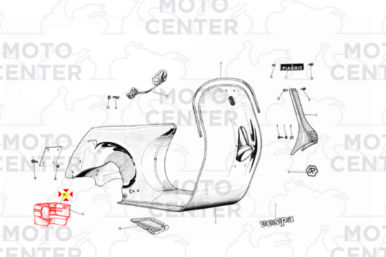 Progettata per proteggere la carrozzeria e il motore da fango, acqua e detriti sollevati dalla ruota posteriore, mantiene intatto lo stile inconfondibile dei modelli PX e PE prima serie.🛵