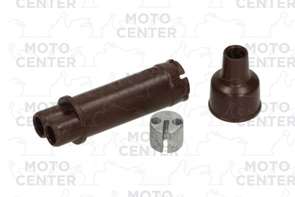 La sua funzione è quella di ripartire il movimento del cavo proveniente dalla manopola verso due destinazioni distinte: il carburatore e la pompa dell'olio (miscelatore).